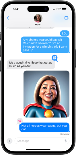 Create your own Genmoji to express yourself in ways that are personal to you. Type a description, or mix your favorite emoji to create something new. For Genmoji inspired by family and friends, choose from options like customizing hairstyle to match your friend’s latest?look.