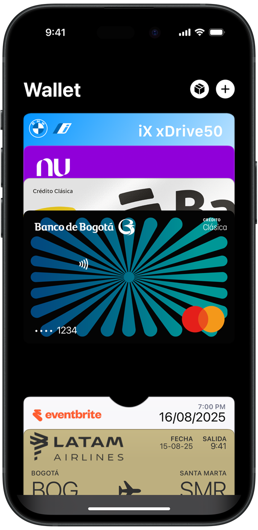 La app Wallet está en tu iPhone para que puedas guardar de?forma segura y en un solo lugar tus tarjetas de crédito y débito, pases de abordar, boletas y más. Además, funciona con el iPhone y?el Apple?Watch, para que tengas a la mano muchas más cosas, llevando encima