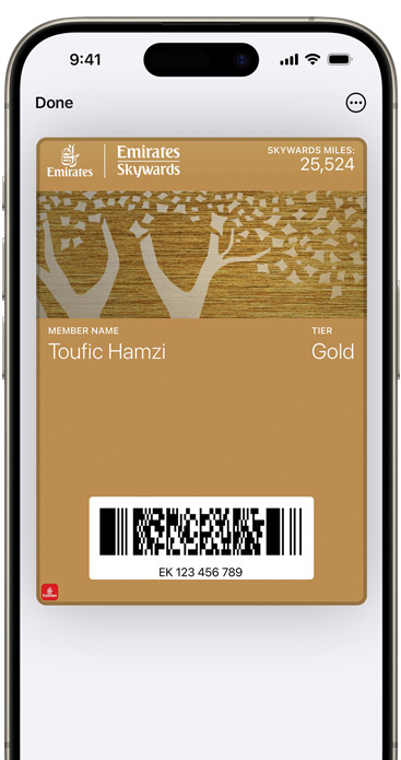 • It’s easy to use different cards and passes in Apple Wallet. Some passes can automatically appear based on time and location, like a boarding pass when you arrive at the airport.