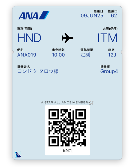 搭乗券をウォレットに追加しておけば、ゲートで畫面を見せるだけで飛行機に乗れます。iPhoneのロックを解除する必要はありま