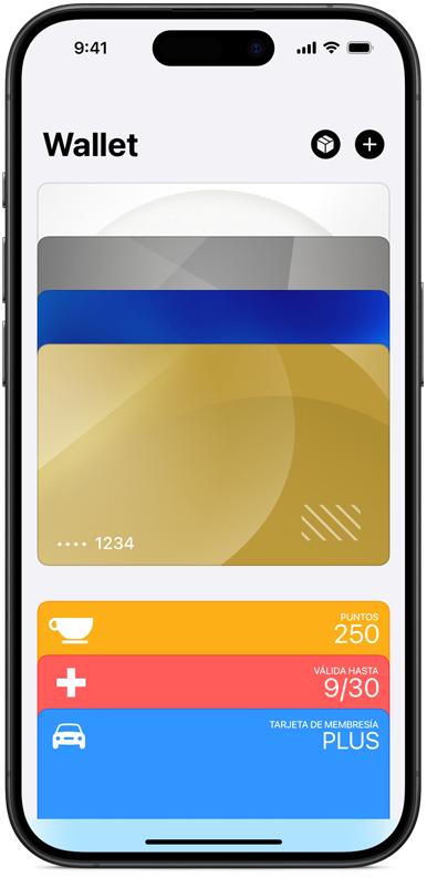 Agregar una tarjeta de crédito o débito es tan fácil como abrir la app Wallet, dar al símbolo más y tocar la parte posterior de tu iPhone con una tarjeta elegible.1 También puedes agregar una tarjeta de forma manual: abre la app Wallet, toca el símbolo más y sigue las instrucciones que aparecen en la pantalla. Tendrás que verificar tu información con el banco o el emisor de la tarjeta. Incluso puedes agregar la tarjeta a tu Apple Watch si lo tienes enlazado. Y cuando cambies de iPhone, puedes transferir tus tarjetas al nuevo dispositivo en un solo?paso.