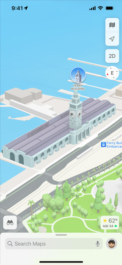 Update to iOS 15, iPadOS 15, and macOS Monterey to get the latest Maps features, including the interactive globe, 3D experiences for cities like San Francisco, Los Angeles, New York, and London, nearby transit, and more.
