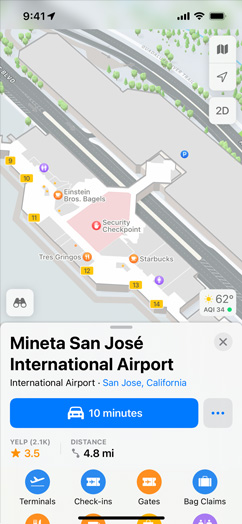 It’s quick and easy to find just what you’re looking for in Maps. Use ultra-targeted filters to search for restaurants by cuisine, price range, and whether they offer takeout. Or choose to see only places that are open right now. Want to broaden your search? Just move the map, and your search results update automatically. Want something closer to home? Tap Nearby to find local places in categories like Restaurants, Gas Stations, Coffee, Hotels, Bars, Fast Food, Groceries, and Shopping Centers. Locations are displayed on the map with?colorful badges, making it even easier to pinpoint your picks.